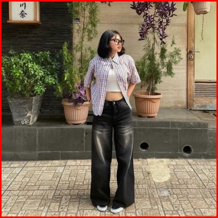 Celana Highwaist Kulot Losse Jeans Wanita Baggy Jeans Panjang Melar Celana Skena Virarr 27-38