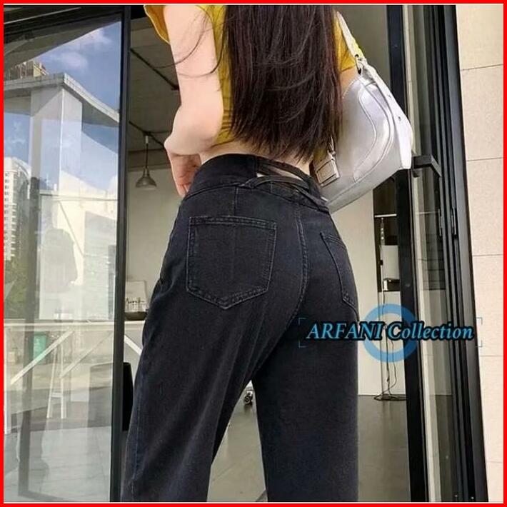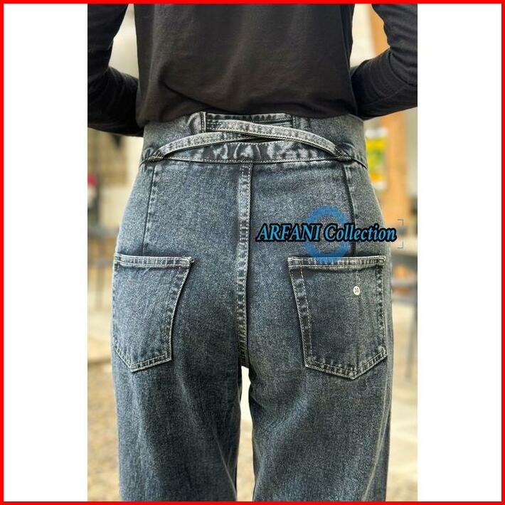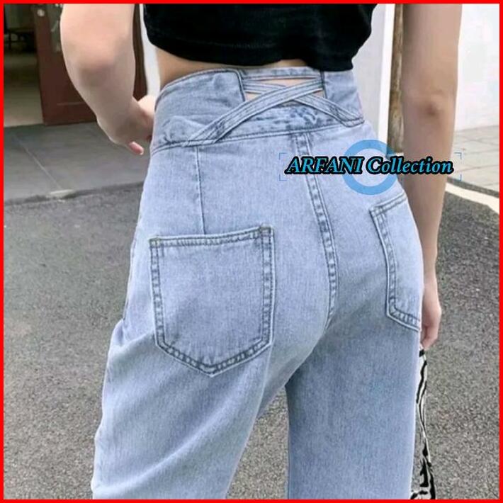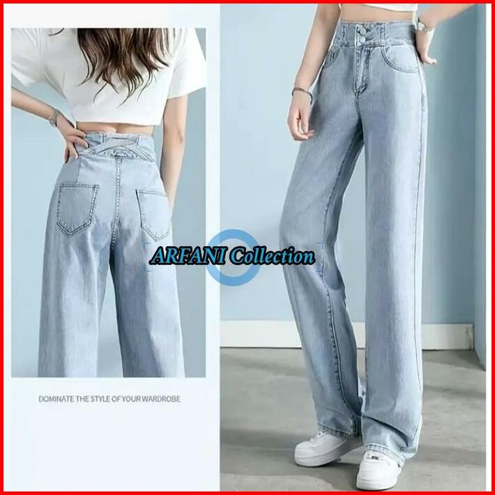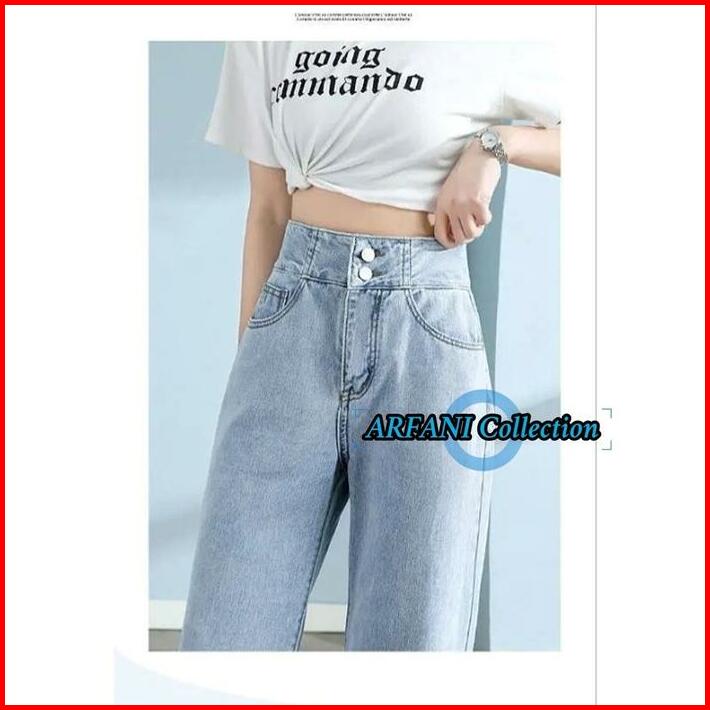 Arfani Collection J23 Celana Panjang Highwaist Kulot Silang Jeans Wanita Double Button 2 Kancing J23 Light Blue Snow Bla