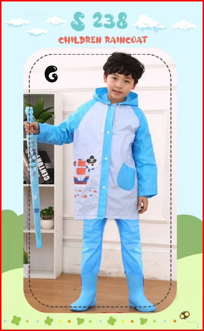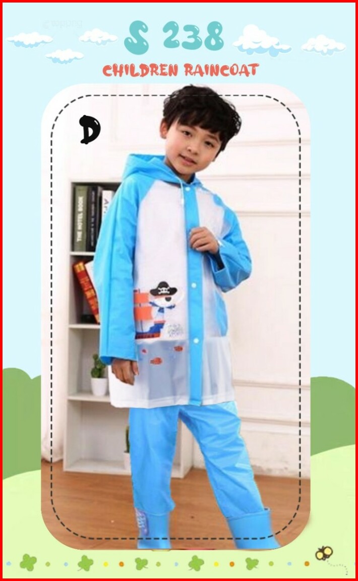 Jas Hujan Anak Laki Celana Karakter Robot Biru Hijau