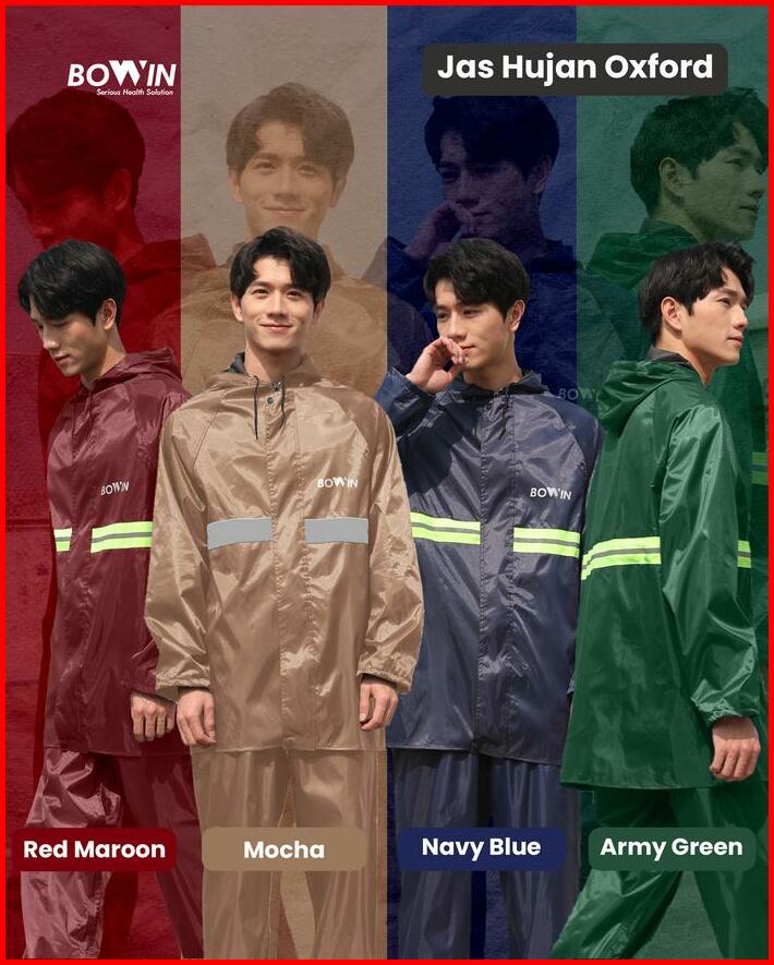 Bowin Jas Hujan Oxford Anti Bakteri Anti Rembes Bahan Tebal Waterproof