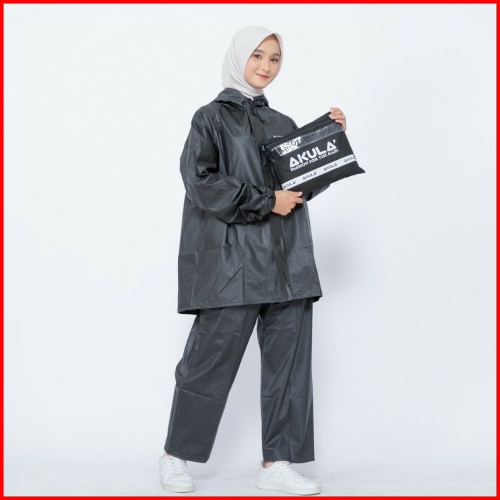 Jas Hujan Pria Wanita Akula Original Bahan Pvc 0 25 Tebal Anti Rembes