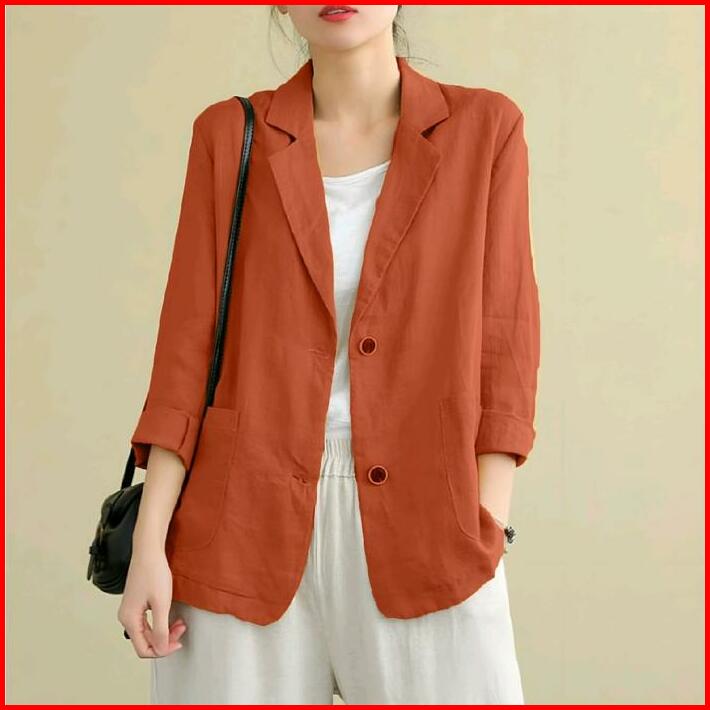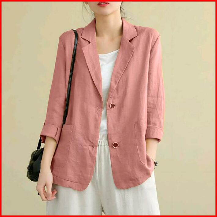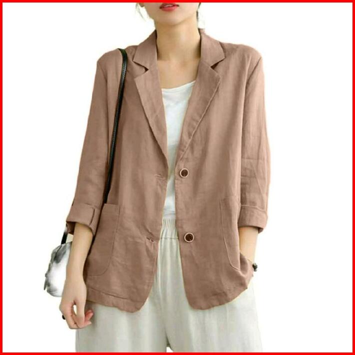 Baju Atasan Blazer Jumbo Wanita Linen Rami Ld 100cm Sampai 140cm Dumma Blazer Polos Kancing Oversize Baju Blazer Kerja C