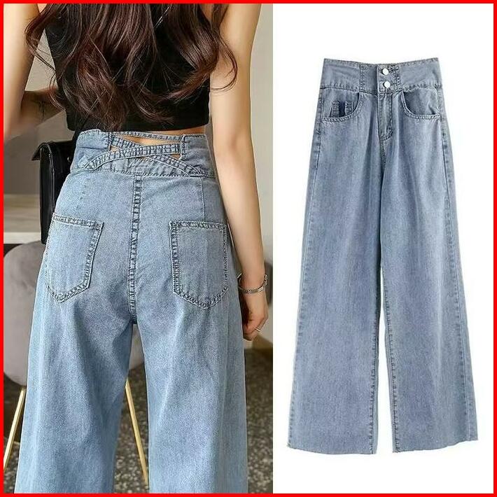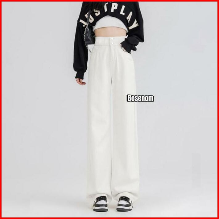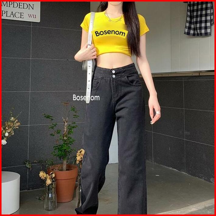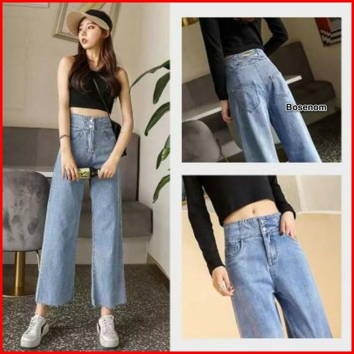 Bosenom- Celana Kulot Jeans Wanita Highwaist Premium Variasi 2 Kancing Loose Celana Jins Panjang Kasual Pinggang Crossba
