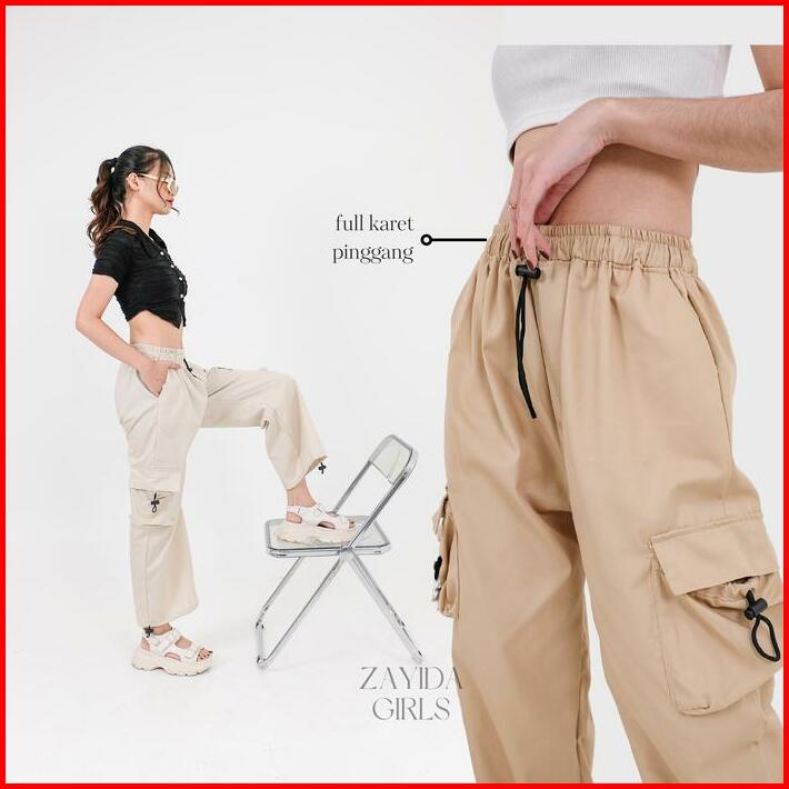 Kiya Cargo Pants Wanita Highwaist Loose Korean Style