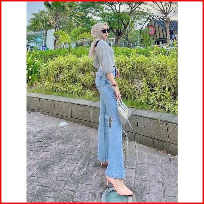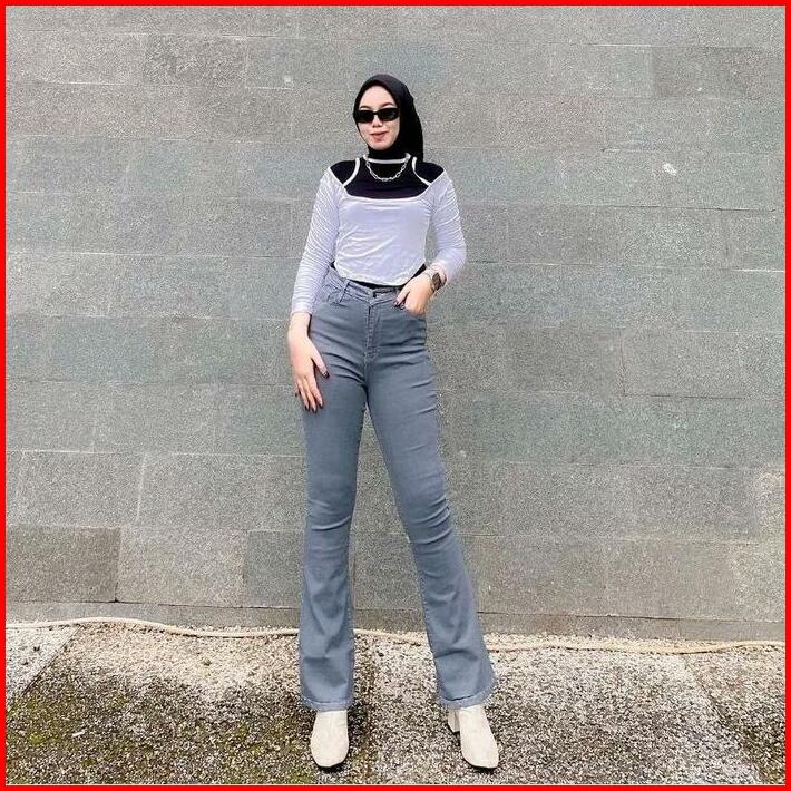 Highwaist Lily Cutbray Jeans Wanita Celana Panjang Cutbray Terbaru Melar Karet Skena