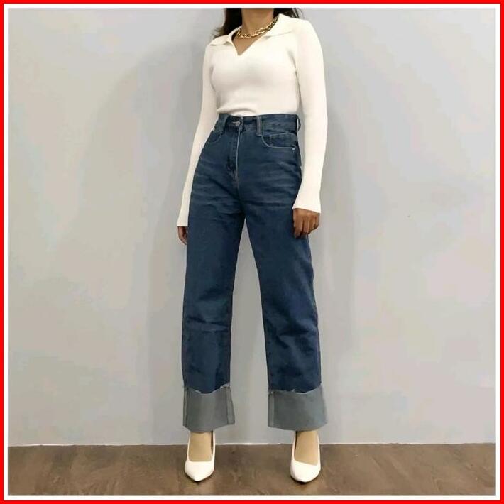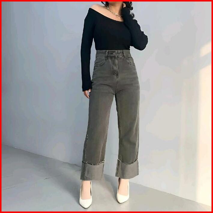 Celana Panjang Highwaist Wanita Jeans Premium Bawahan Lipat Style