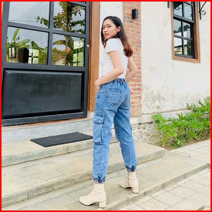 Simplyjeans Ruby Celana Jogger Highwaist Jeans Pinggang Wanita Karet