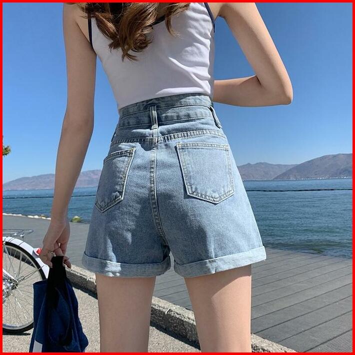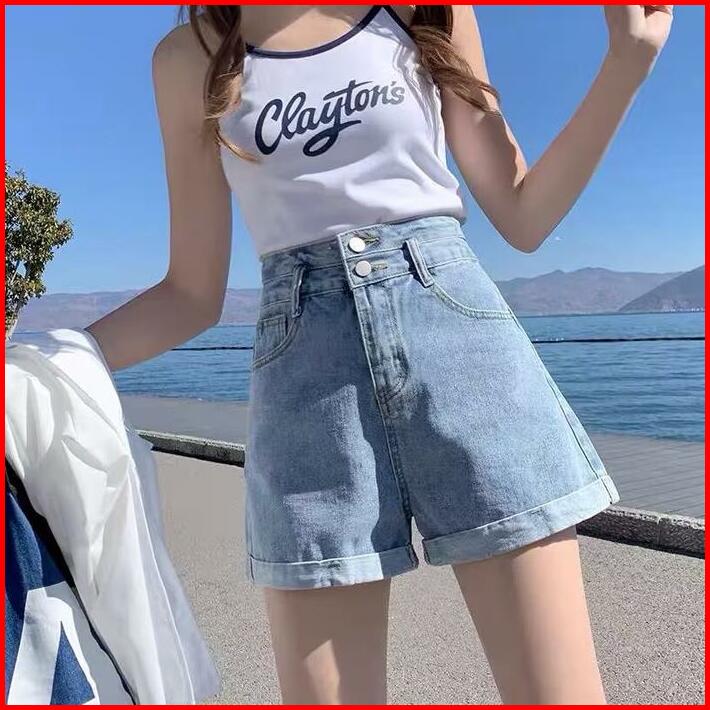 Beevalue Celana Pendek Jeans Wanita Highwaist Dua Kancing Hotpants Highwaist Bahan Premium Celana Jeans Wanita Tinggi Pi