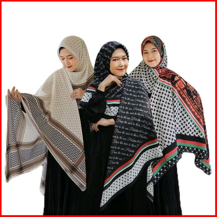 Hijab Jilbab Persegi Jumbo Ukuran 140x140 Cm Wanita Syar I Motif Kafeeyah Palestina Palestin Kerudung Segi Empat Voal Ju