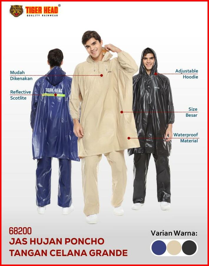 Jas Hujan Anti Bocor Super Jumbo Tiger Head Setelan Poncho Celana Bisa 120kg Model Terbaru Dengan Bahan Pvc