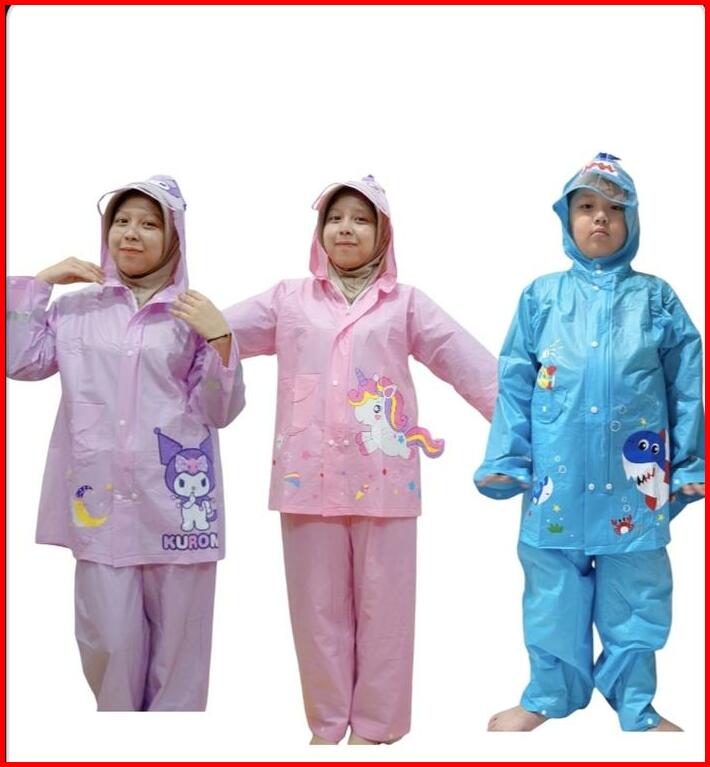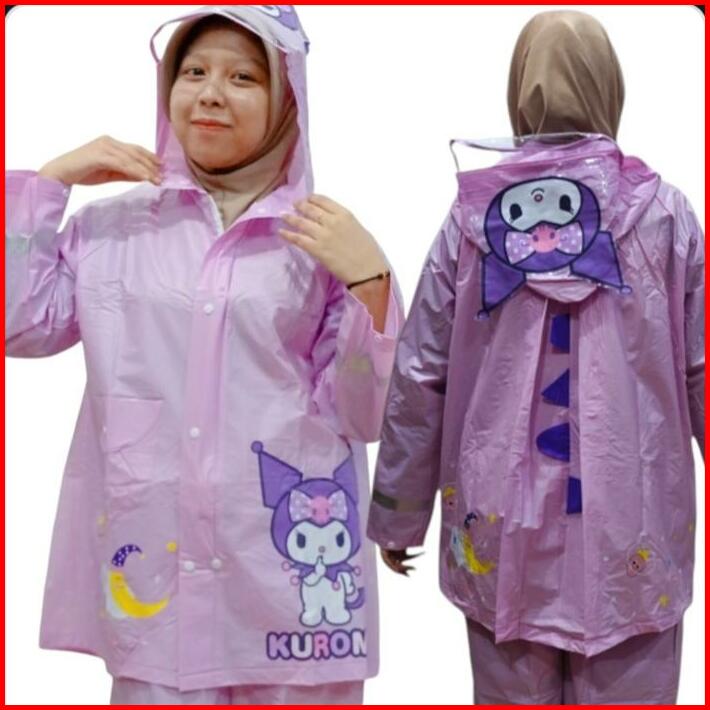 A-cross Jas Hujan Setelan Anak Kuromi Dengan Ruang Ransel Di Belakang Lucu Dan Imut Pvc Biru Pink