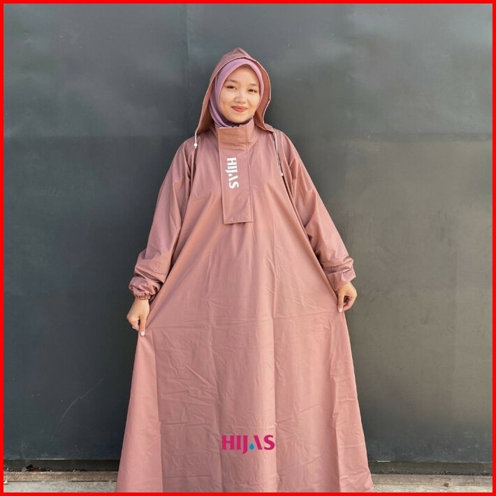 Jas Hujan Gamis Dewasa Zipper Hijas Muslimah Fit To Xxl