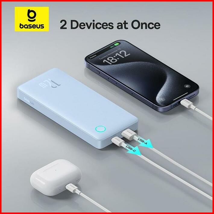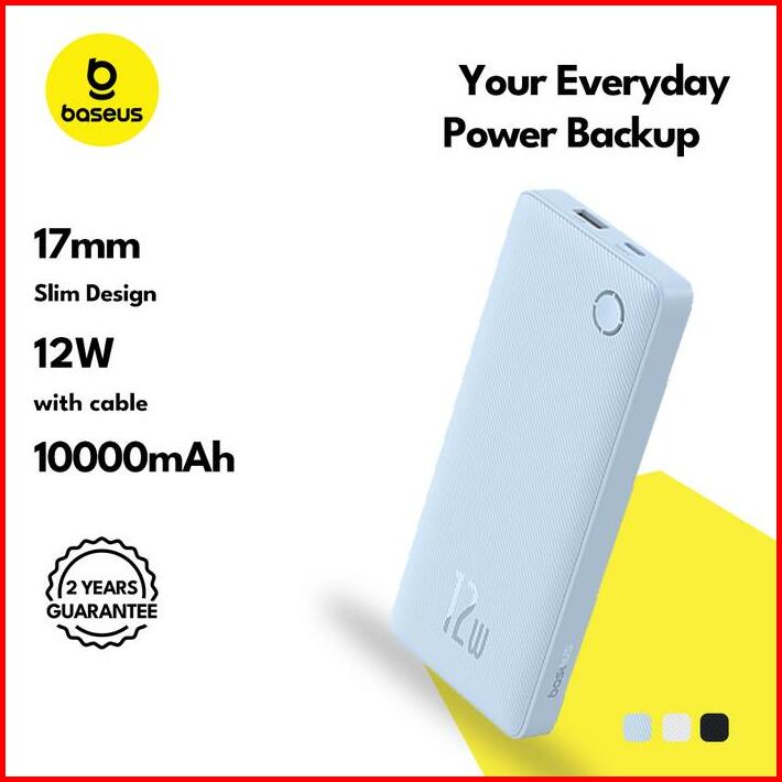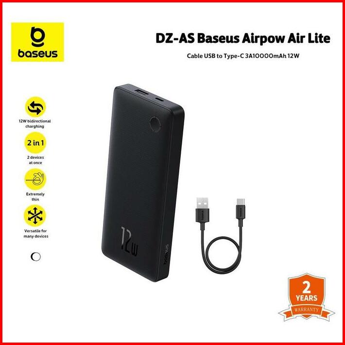 Baseus Airpow Air Lite Power Bank 10000mah 12w With Simple Charging Cable Usb To Type-c 3a 0.3m Power Bank Fastcharging