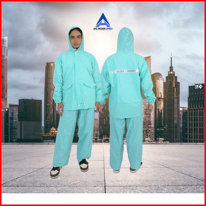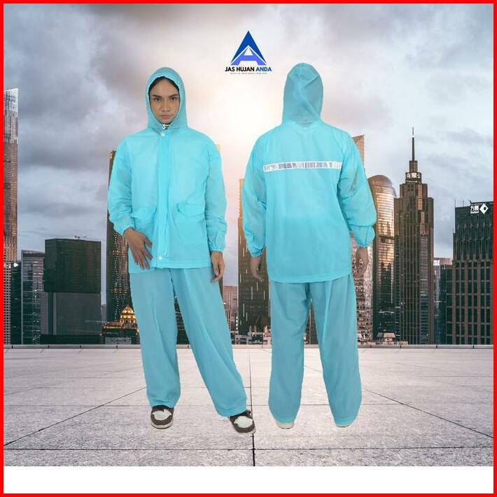 Jas Hujan Dewasa Setalan Pvc Trendi Anti Rembes Anti Air Anak Muda Biru Mantel Pria Wanita Ponco Setelan Hijau