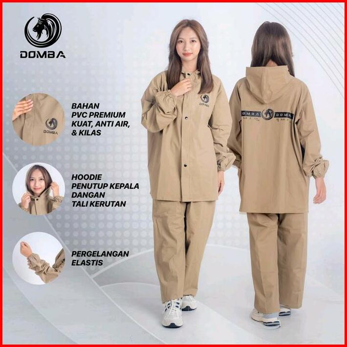Jas Hujan Anti Rembes Setelan Pria Wanita Pvc Tebal Original By Domba