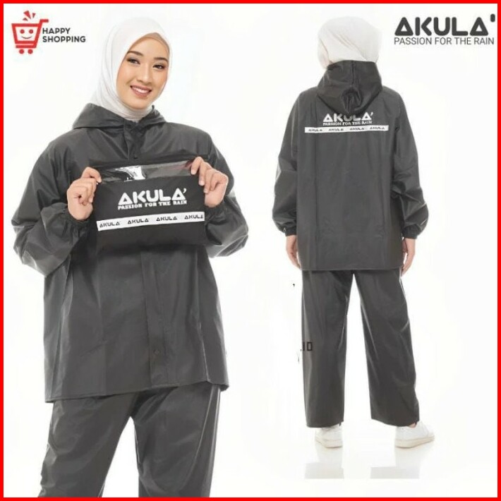 Jas Hujan Pria Wanita Bahan Tebal Kuat Elastis Anti Rembes Akula