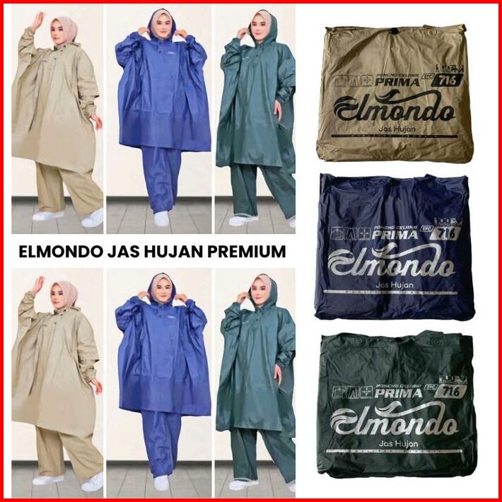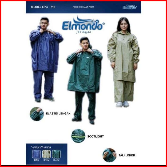 Jas Hujan Elmondo Setelan Ponco Celana Prima 716 Tahan Air Pvc Cream Hijau Biru