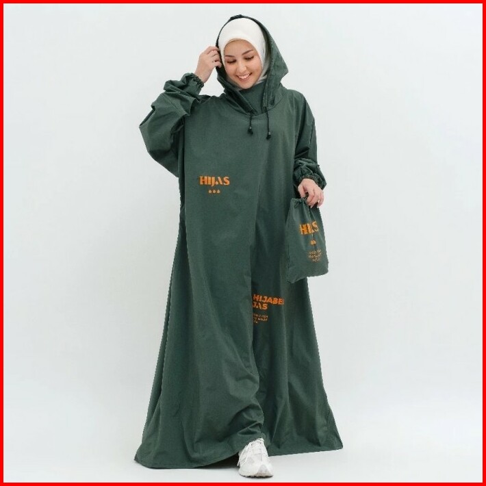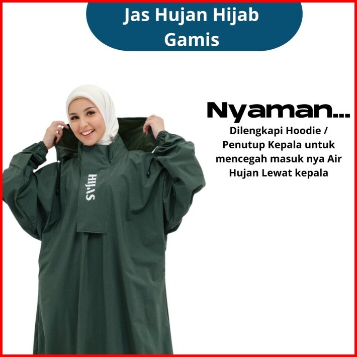 Jas Hujan Hijab Gamis Muslimah Wanita Jumbo Terusan Rok Ponco Zipper