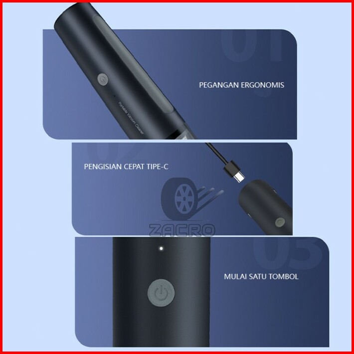 Zacro Vacuum Cleaner Mobil 3in1 Mini Nirkabel Multifungsi Cordless Penyedot Debu Portable