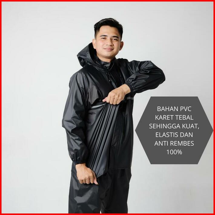 Ailook Jas Hujan Raincoat Full Seal Press Anti Rembes Setelan Pria Wanita Bahan Pvc Karet Tebal Kuat Elastis Biru Cream