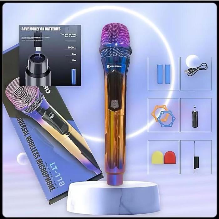 DP 0 MKC KIMISO MICROPHONE LT118 2 MIC WIRELES MICROPHONE BLUETOOTH DENGAN RE1MICCEIVER SYSTEM MIC MKF01