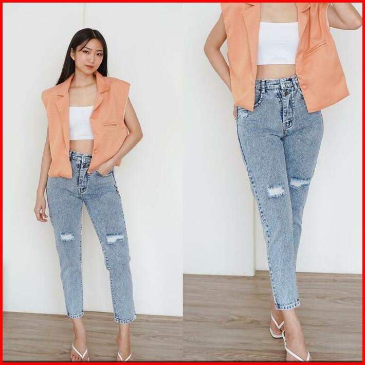 Sys Clothier Meggy Straitht Jeans Celana Jeans Wanita Ukuran Normal Dan Jumbo Ii -highwaist -non Sterch