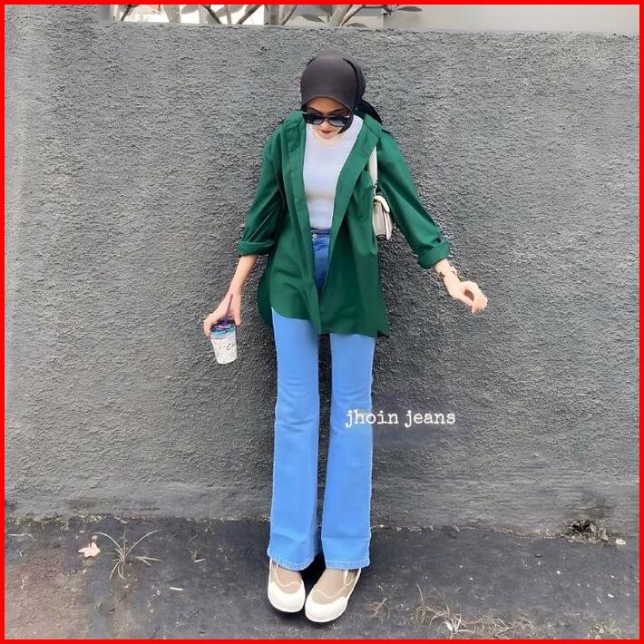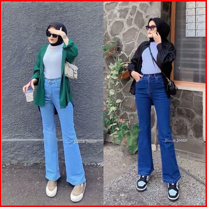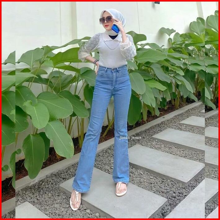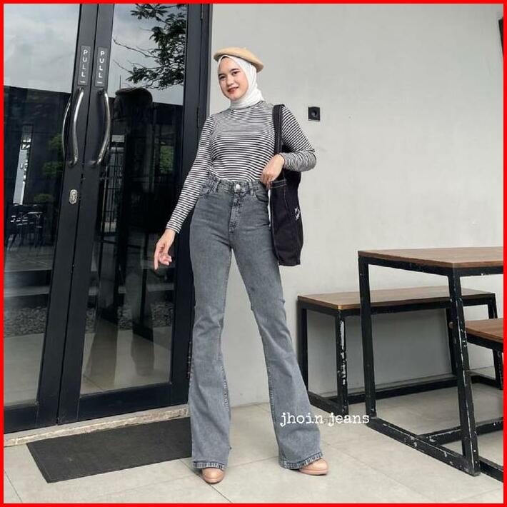 Cutbray Jeans Wanita Highwaist Terbaru Celana Panjang Karet Hitam