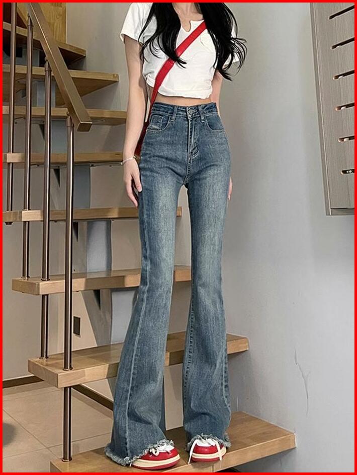 Biru Retro Jeans Cutbray Highwaist Seksi Jeans Wanita Rawis Celana