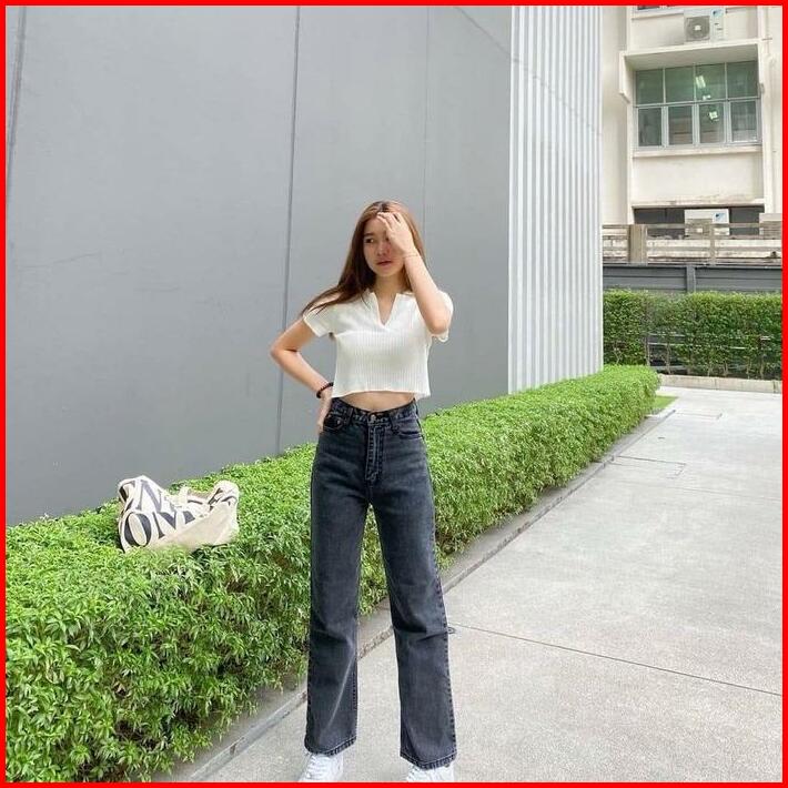 Fours Celana Jeans Highwaist Jeans Loose Polos