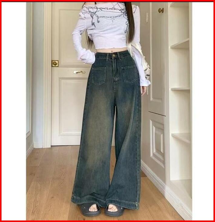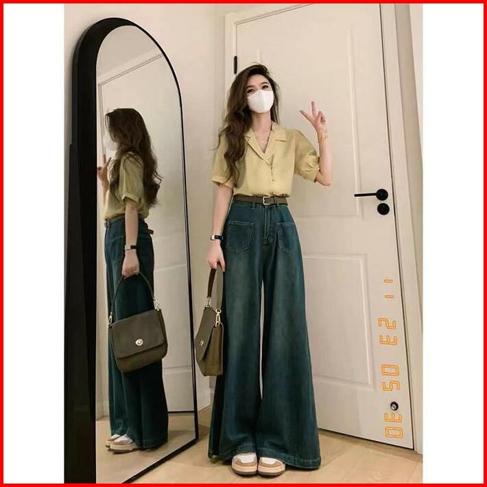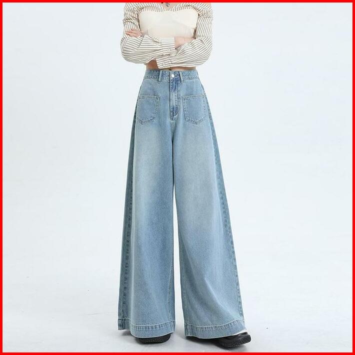 Bosenom- Celana Kulot Highwaist Jeans Wanita Skena Wide Leg Kantong Depan Jins Gombrong Panjang Cewek