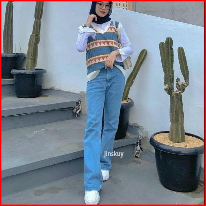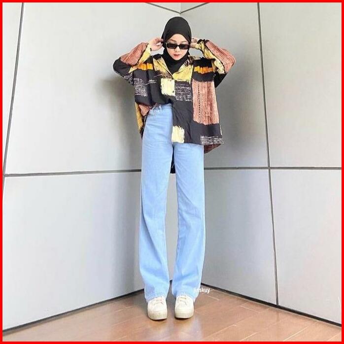 Highwaist Kulot Jeans Wanita Loose Lightblue Celana Panjang