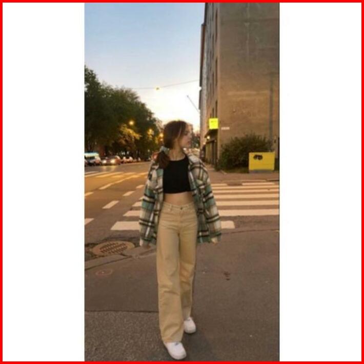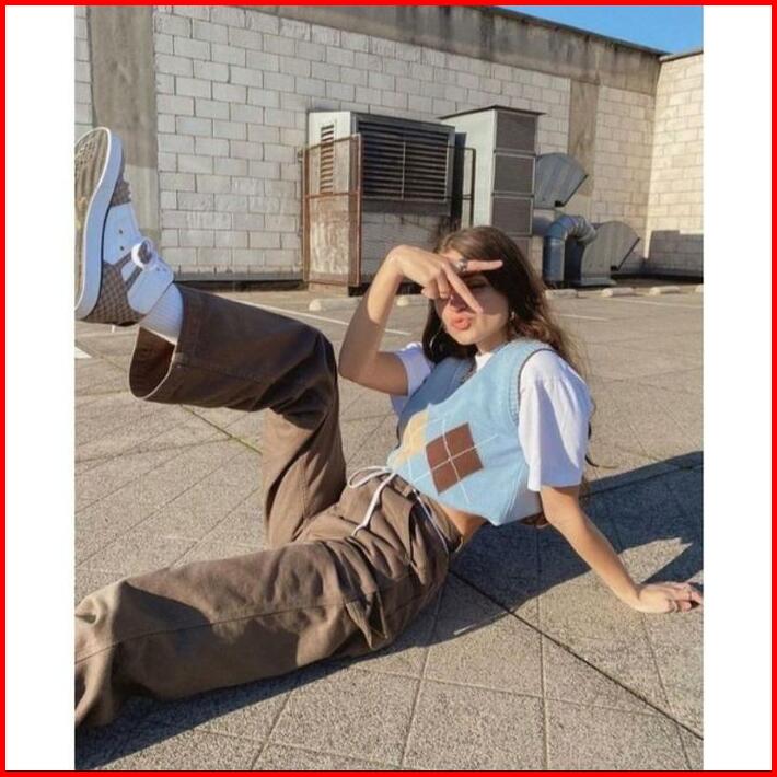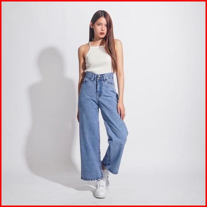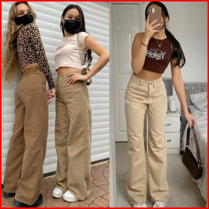 Ready Celana Longgar Kulot Jeans Highwaist Warna Polos Broken Cream Khaki Brown Coklat Wanita Sevins