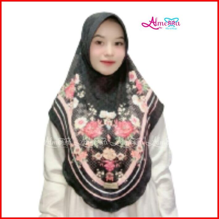 Almerra-hijab Bergo Printing Premium Jilbab Pad Kerudung Muslim Motif Bunga Flow Panjang Syari