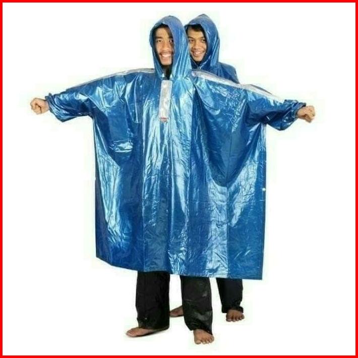 Jas Hujan Poncho Dewasa 2 Kepala Brand Elmondo 708 Biru