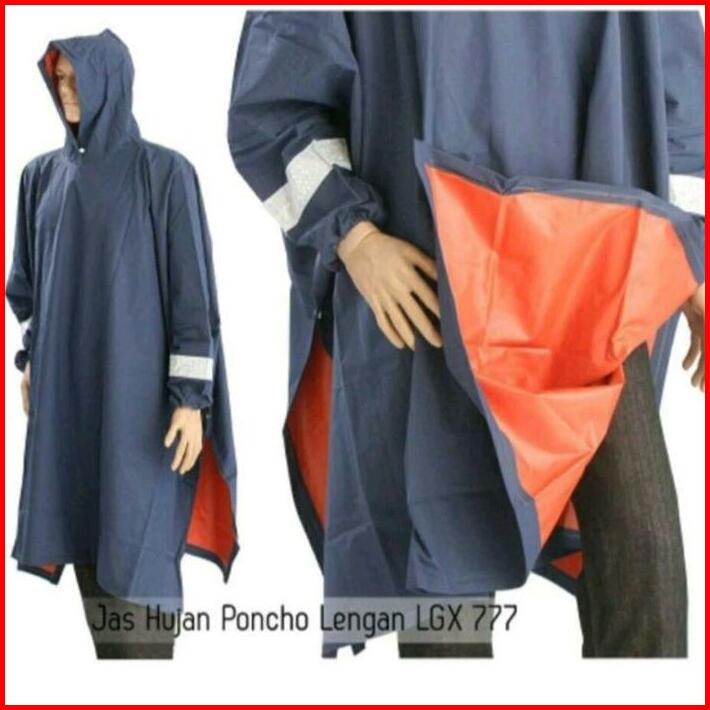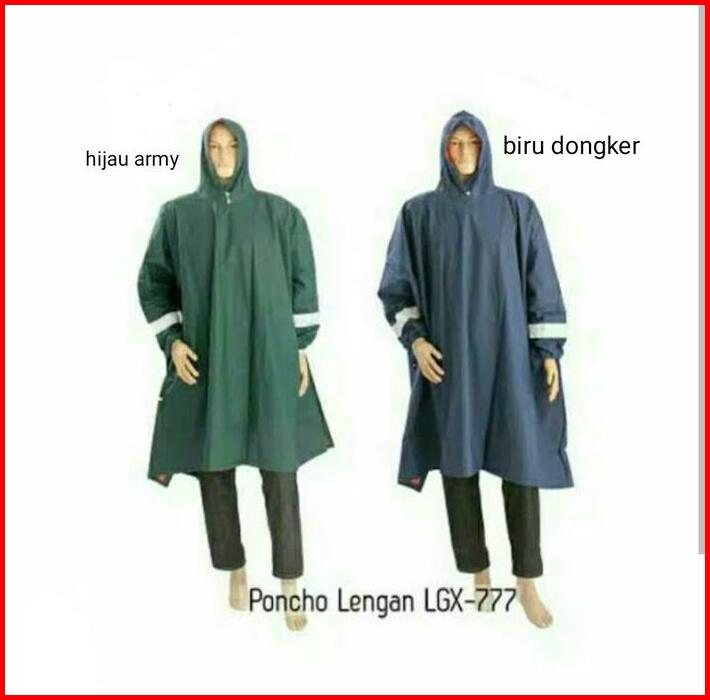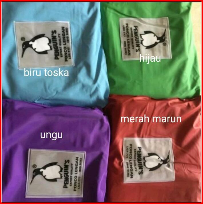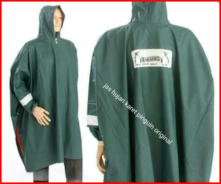 Jas Hujan Poncho Pinguin Dengan Bahan Pvc Rubber Lgx777 Super Tebal Dan Ori Warna Biru Hijau