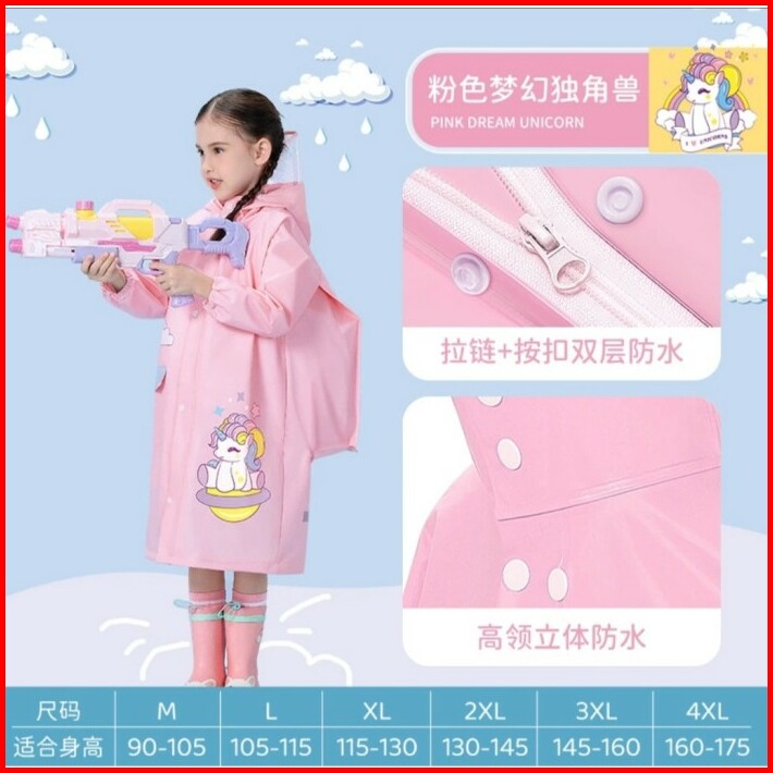 Jas Hujan Anak Unicorn Terusan Ponco Besar Ransel Cowok Cewek Original