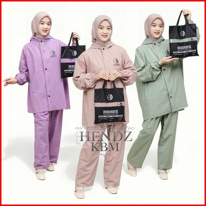 Jas Hujan Hendz Anti Rembes Setelan Dewasa Baju Celana Pvc Karet Tebal Elastis Anti Air