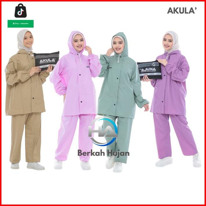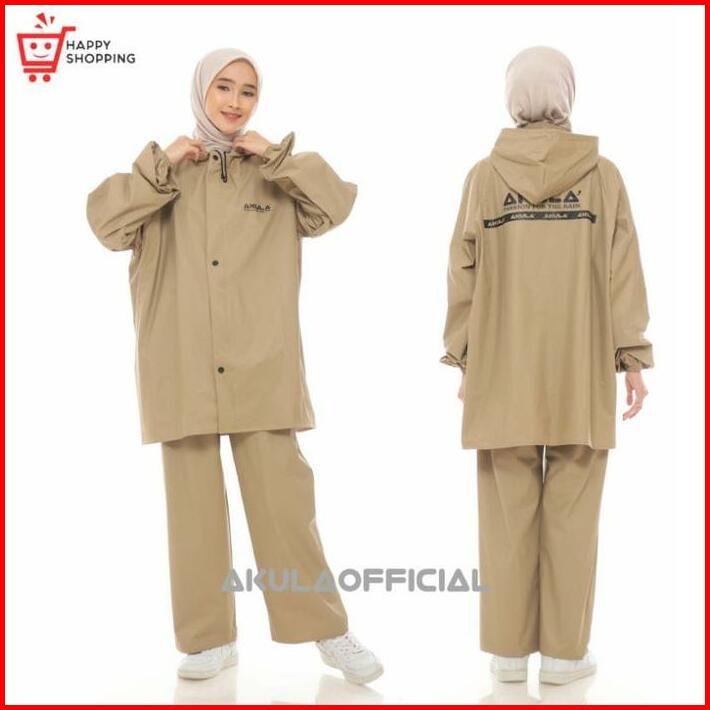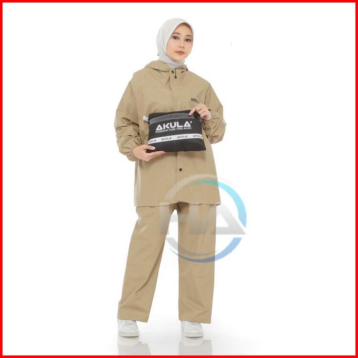 Jas Hujan Pria Wanita Setelan Baju Celana By Akula Anti Rembes Mocca