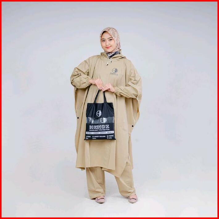 Jas Hujan Jumbo Mantol Hujan Ponco Kelelawar Pria Wanita Original Hendz Bahan Pvc Karet Anti Rembes Biru Hijau