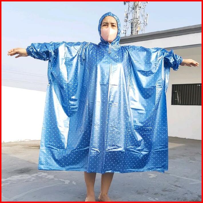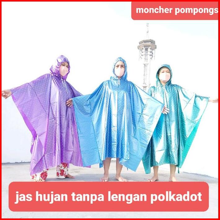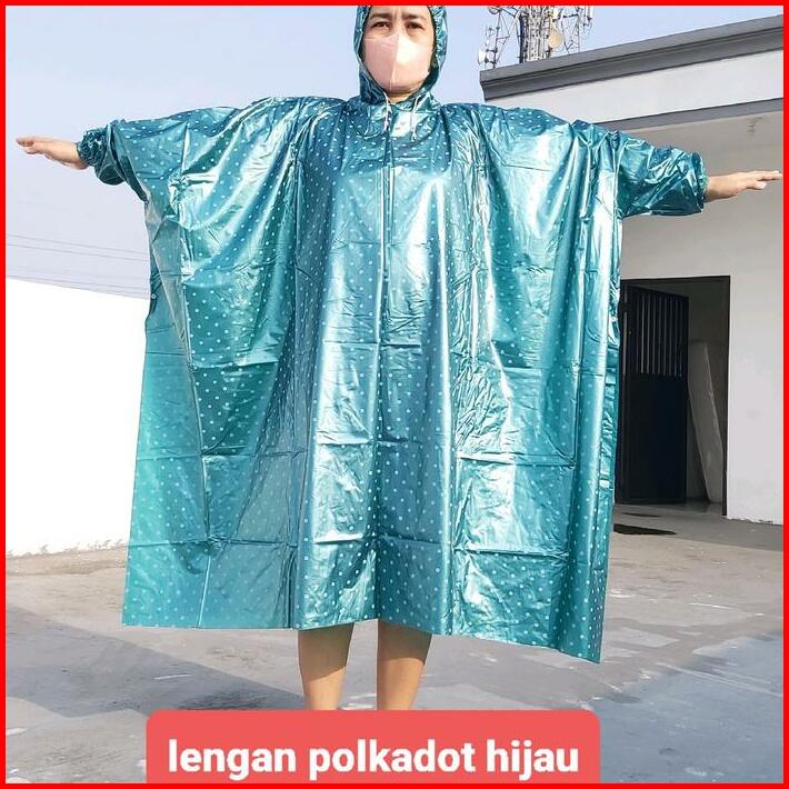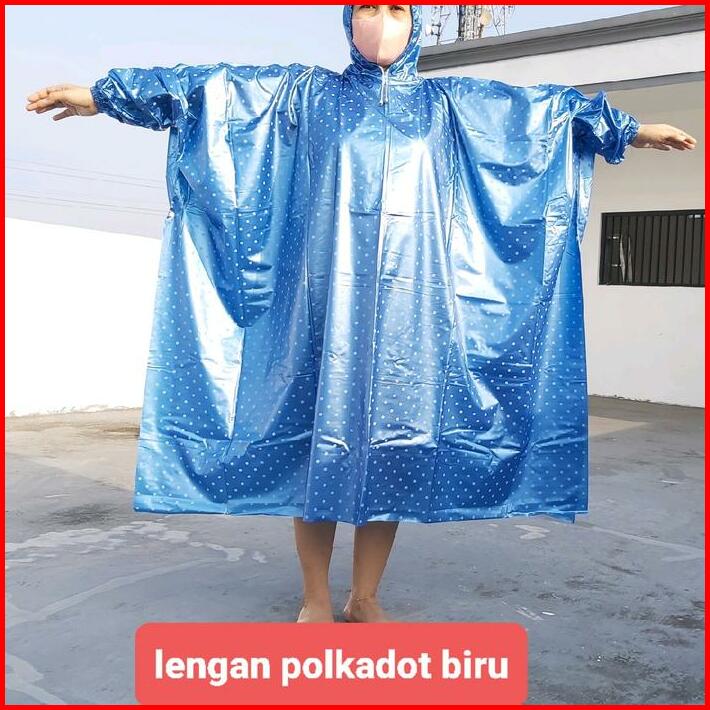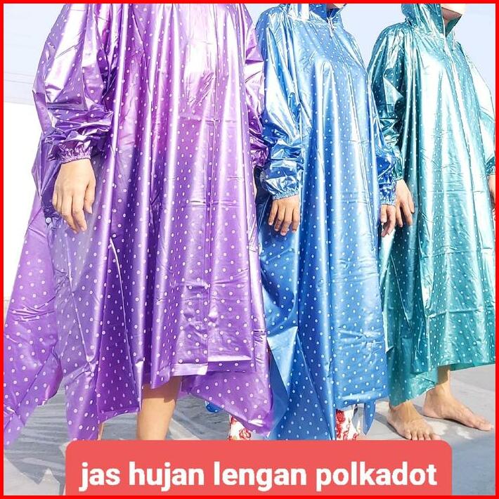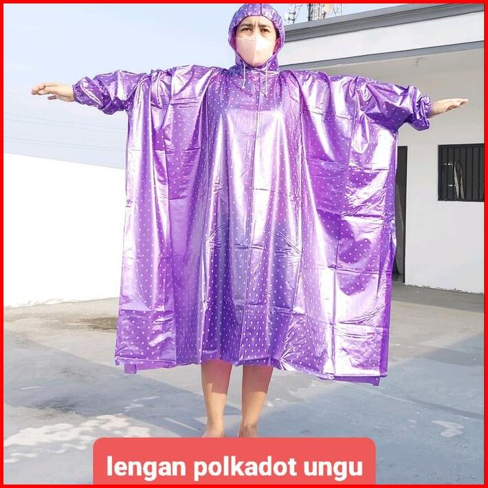 Jas Hujan Ponco Lengan Polkadot Dan Ponco Kelelawar Polkadot Waterproof Pvc Motorbike Biru Hijau Ungu Anti Rembes