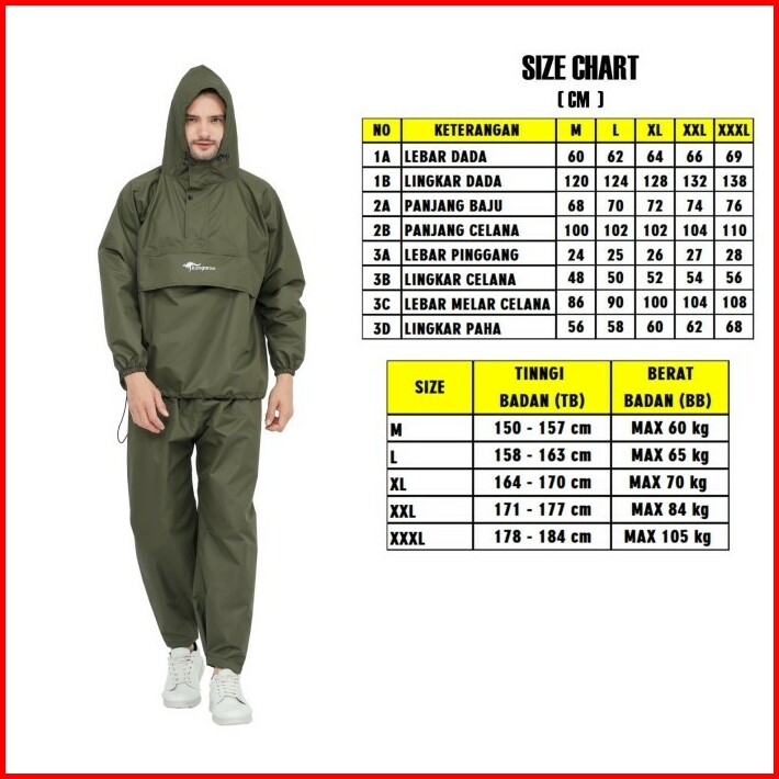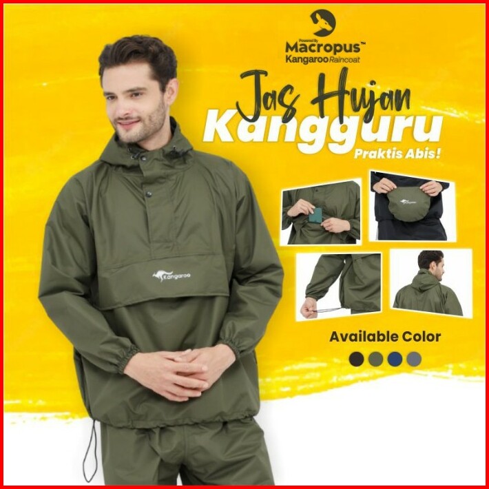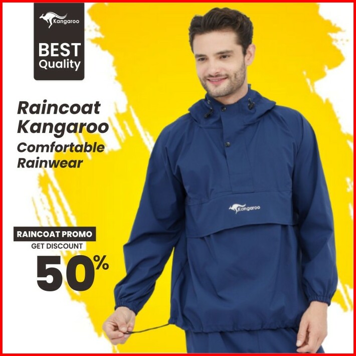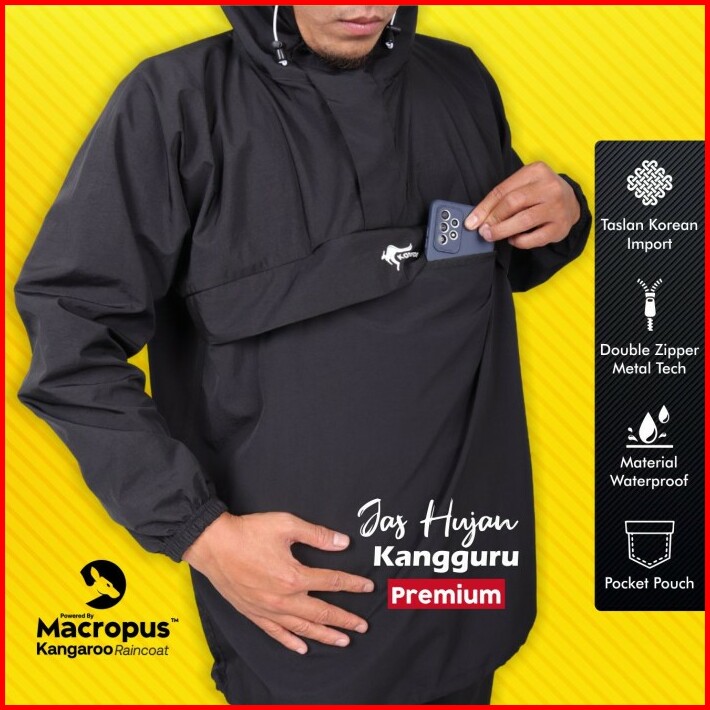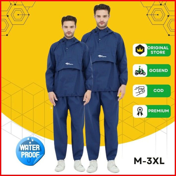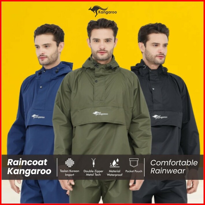 Jaket Jas Hujan Pria Setelan Mantel Saku Kangaroo Raincoat Premium Full Seal Big Size Ukuran M L Xl Xxl Xxxl
