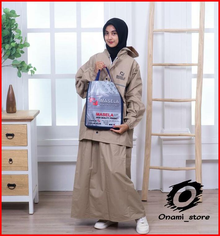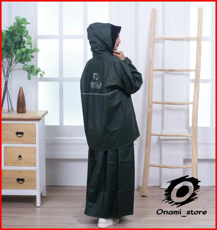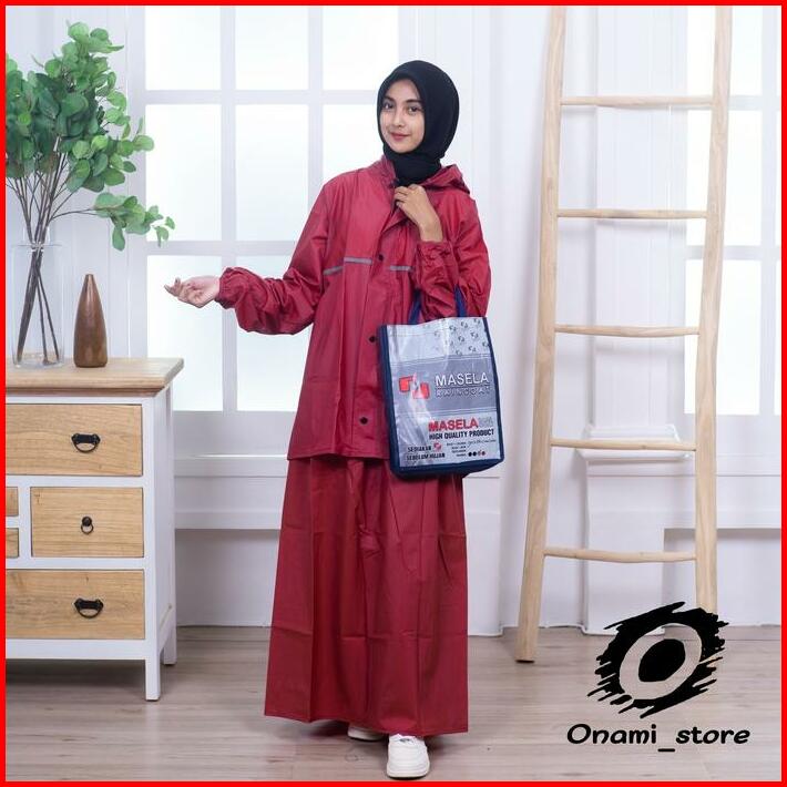 Jas Hujan Wanita Rok Setelan Baju Dan Rok Dewasa Tebal Lentur Anti Rembes Merk Masela