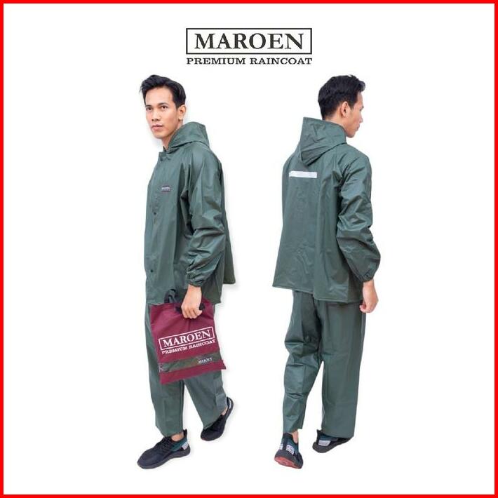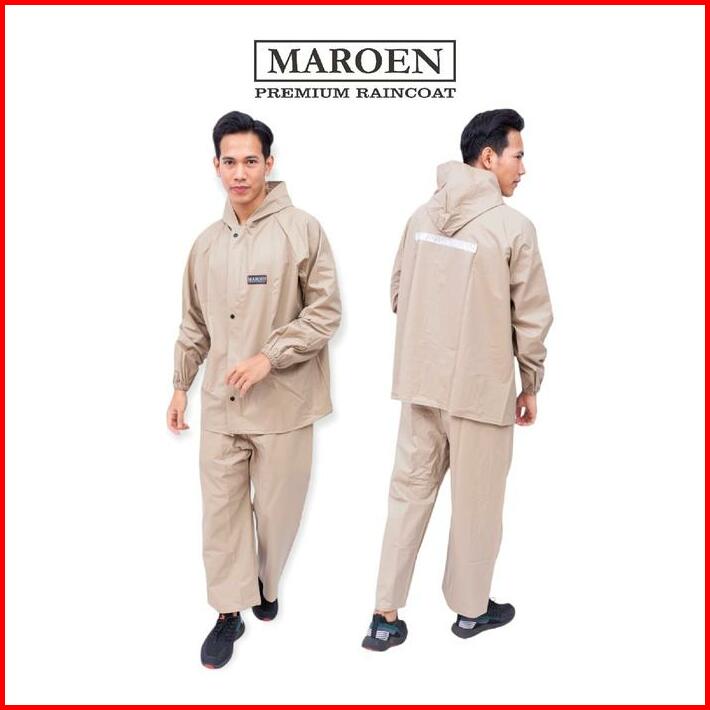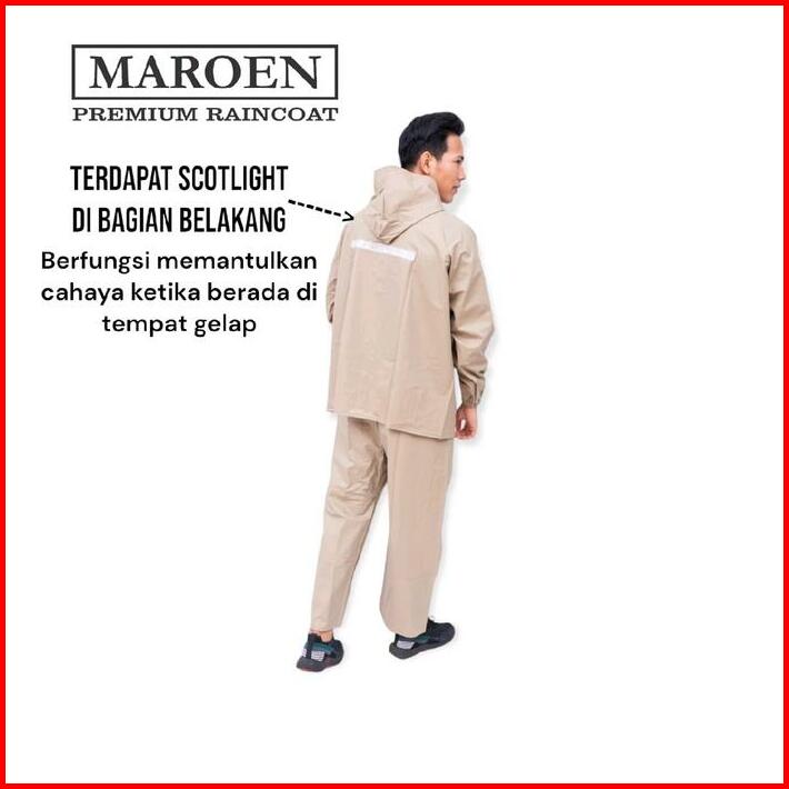 Jas Hujan Pria Dan Wanita Maroen Premium Original Bahan Tebal Anti Rembes Anti Sobek Cream