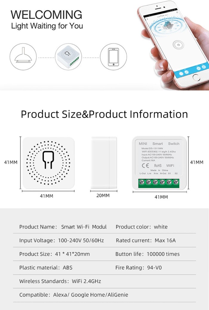 DP 0 AMC TUYA MINI SMART SWITCH BREAKER 16A WIFI SAKLAR PINTAR SMART LIFE TUYA WIFI