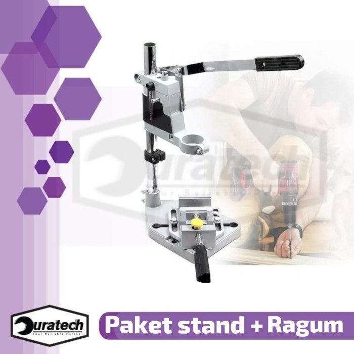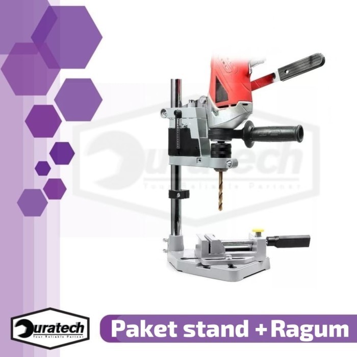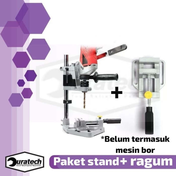 Paket 2 in1 Stand Drill Dudukan Bor Tangan Dan Drill Press Vice Clamp Drill Stand Stan Bor Tangan Penyanggah Dudukan