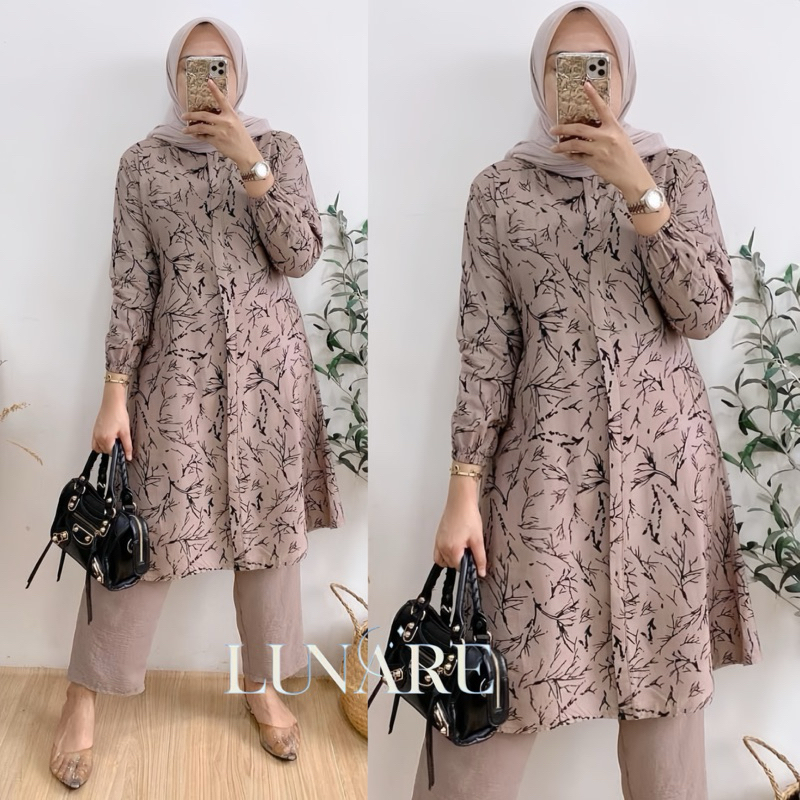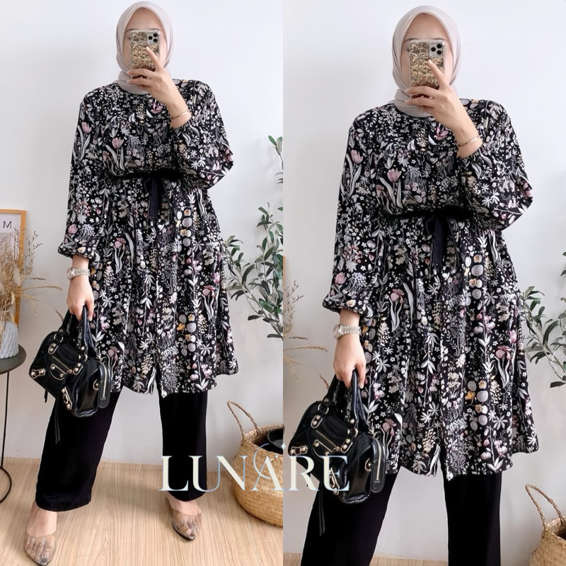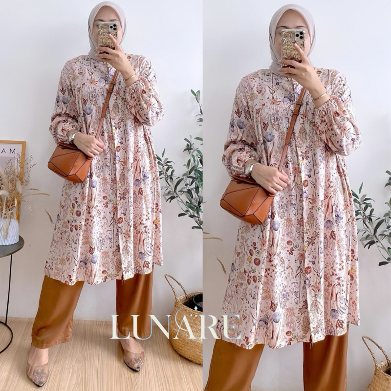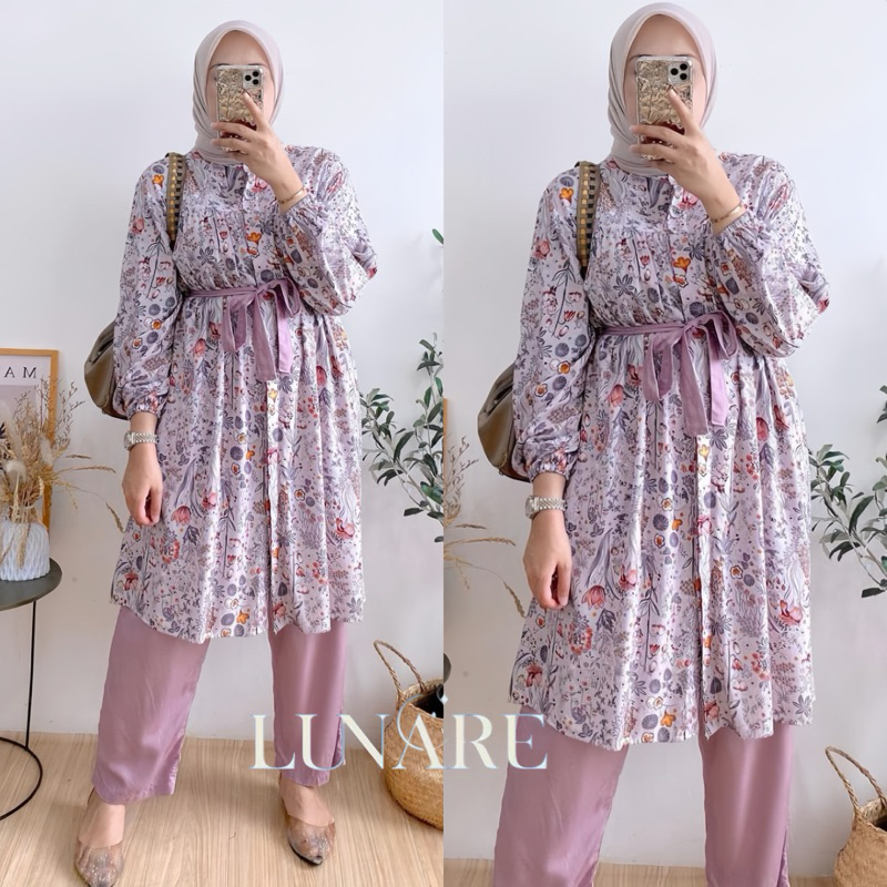 LUNARE Set Tunik Best Seller Setelan Tunik Wanita Terlaris Set Pakaian Kerja Wanita Viral Setelan Rayon Busui Kekinian