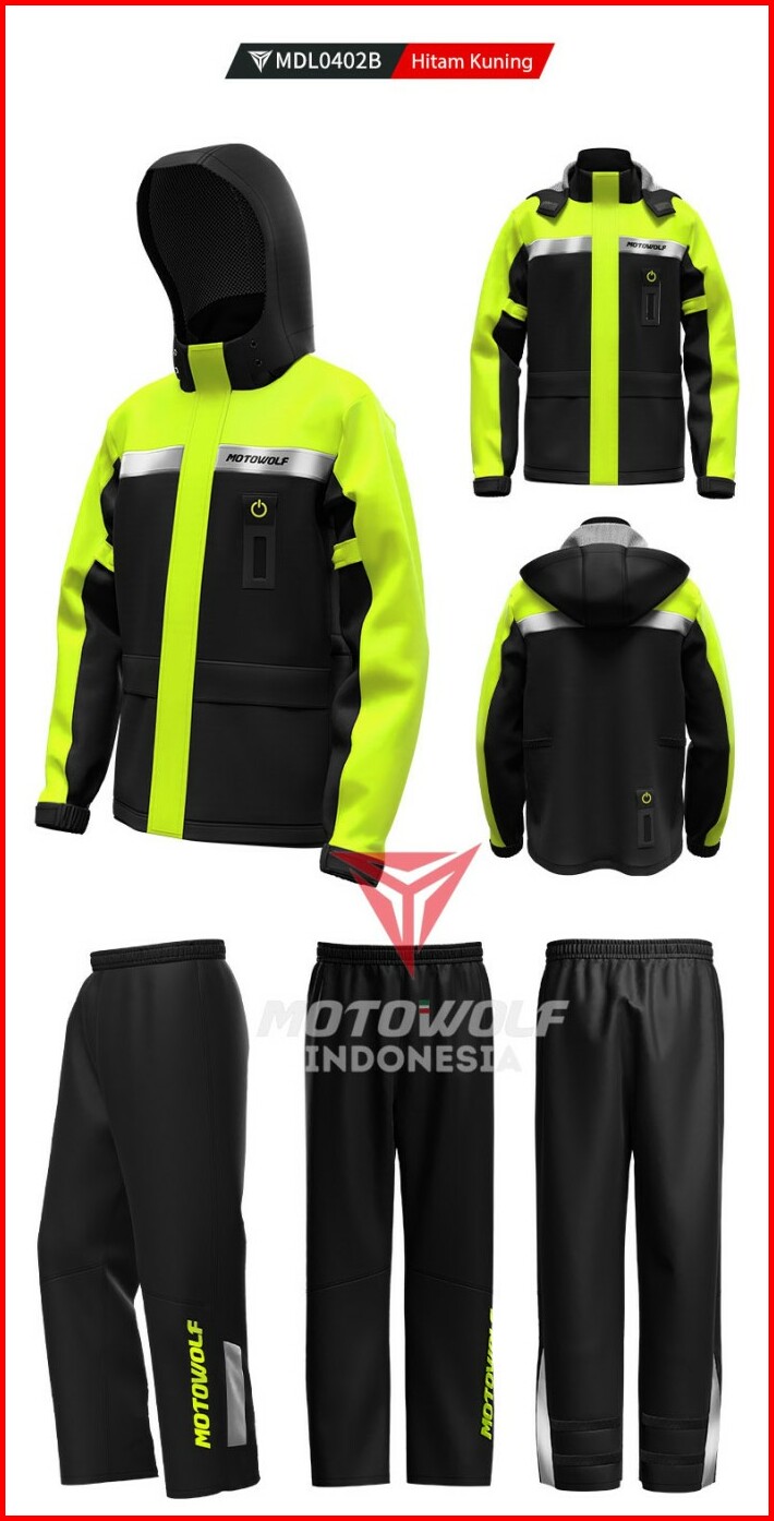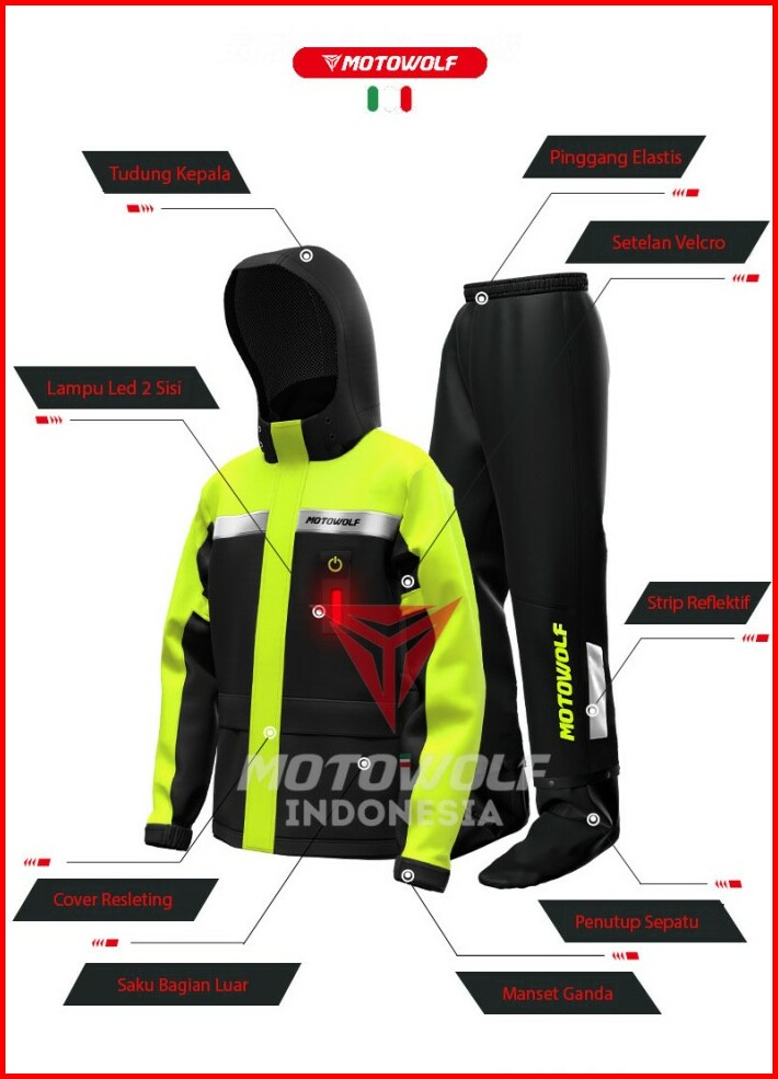 Motowolf Jas Hujan Motor Double Furing Plus Led Flash Ponco 0402b