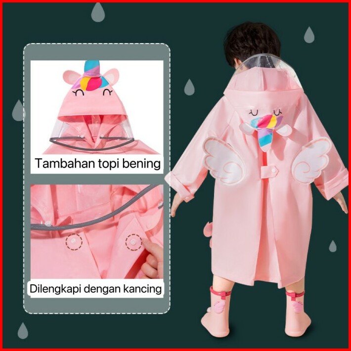 Jas Hujan Anak Kualitas Premium Rain Coat Unicorn Baju Hujan Dino
