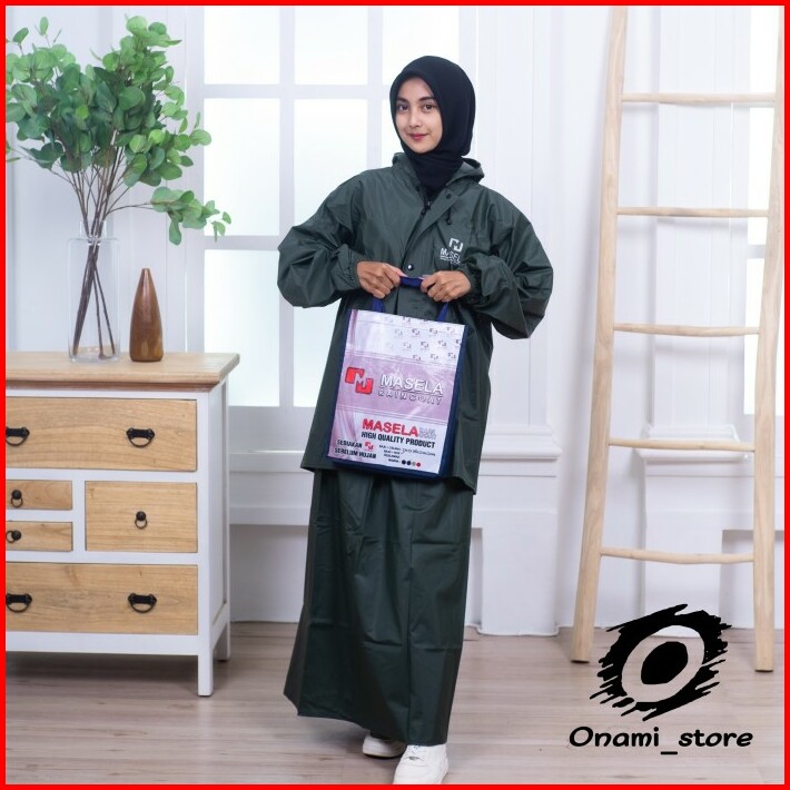 Jas Hujan Wanita Baju Dan Rok Setelan Dewasa Anti Reembes Merek Masela
