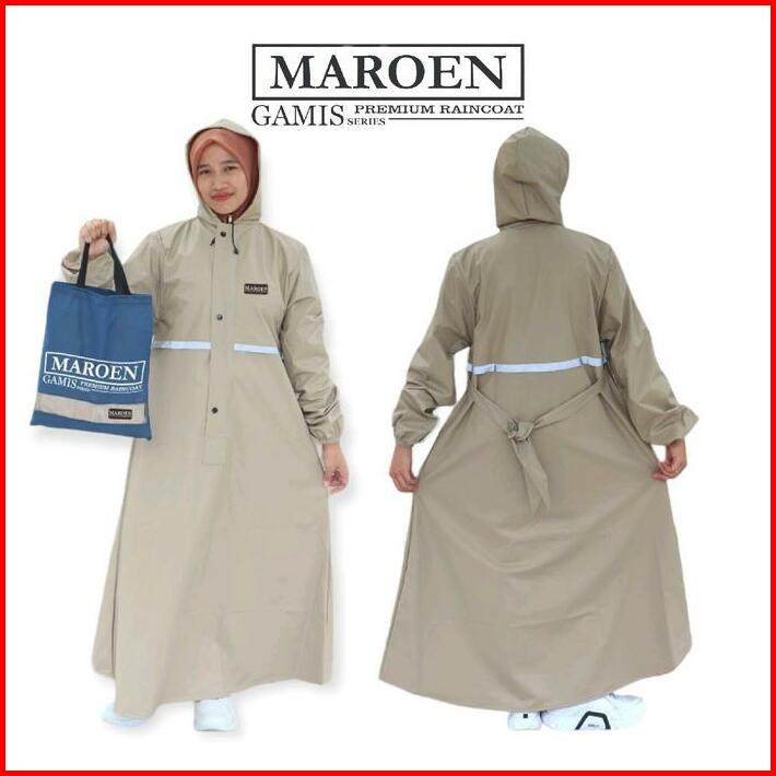 Jas Hujan Gamis Maroen Wanita Muslimah Syar I Bahan Tebal Pvc 0 25 Anti Rembes Tahan Air Ponco Setelan Sruni Gna Axio Ba